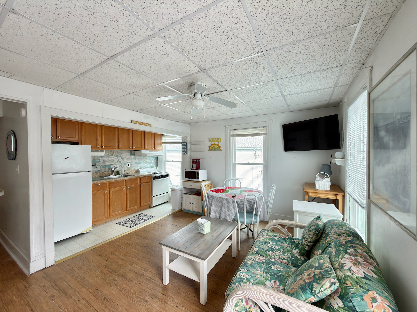 2 Bedroom, 1 Bath- Full Season Rental. Cozy, second-floor unit with excellent ocean views near center of town. Recently renovated exterior and deck add to comfort and enjoyment. Close to beach and nightlife, as well as church and library, unit offers an old time, seashore feel. No dishwasher, washer or dryer. The owner prefers a minimum of 2 weeks leases. ? ?