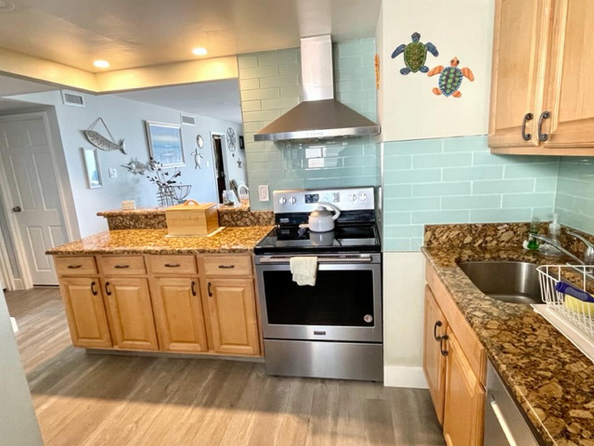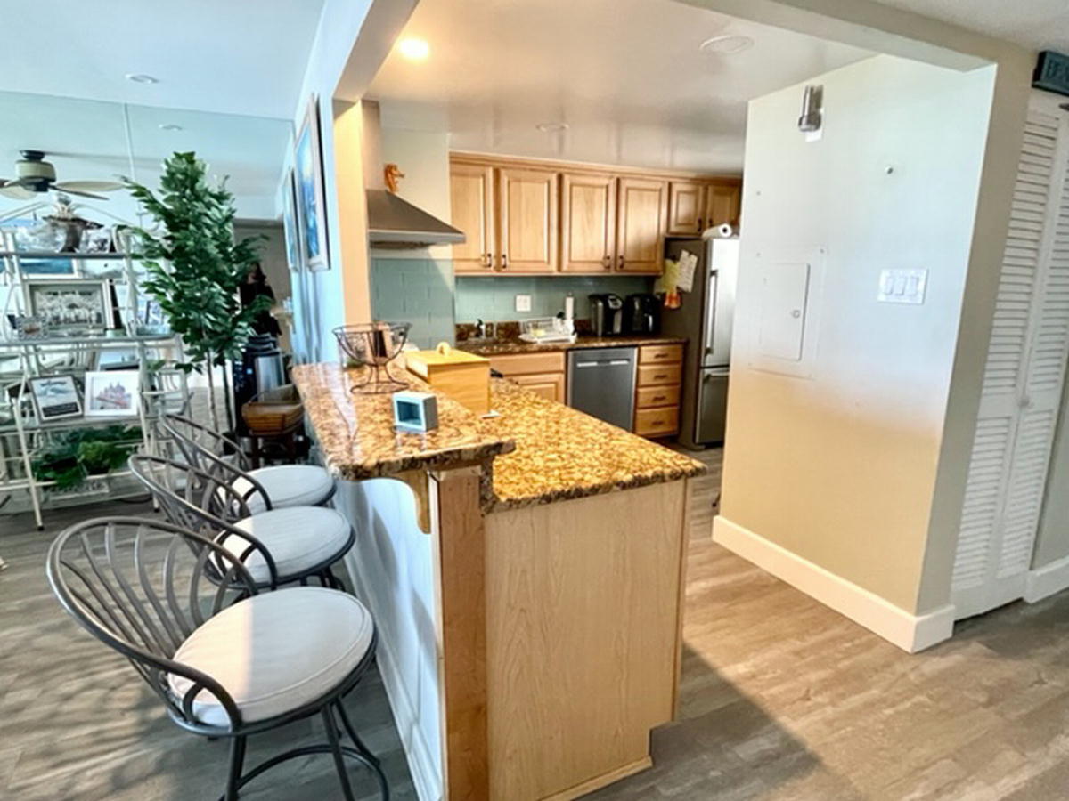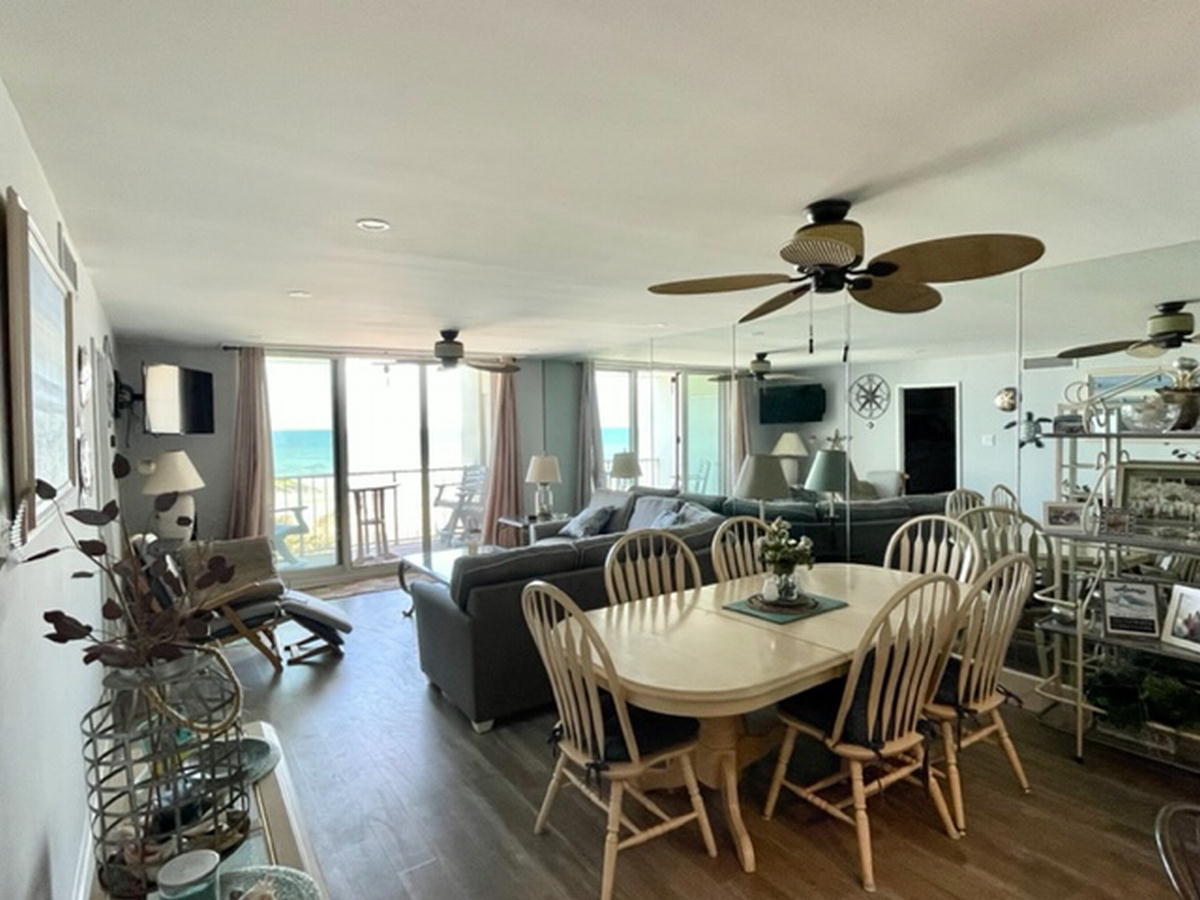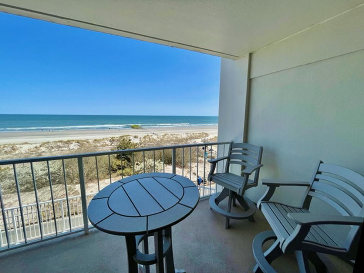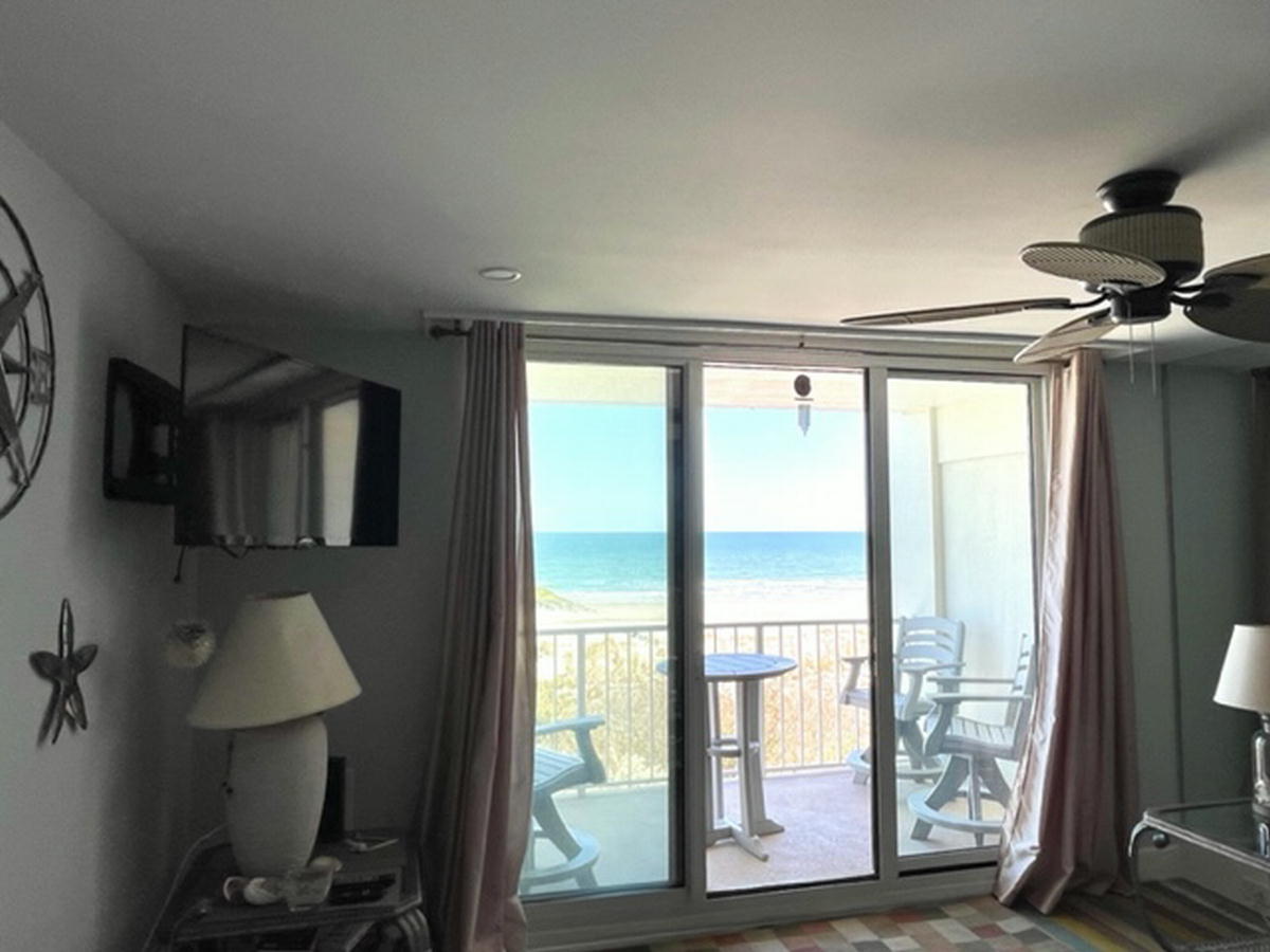 Beautiful Spinnaker condominium. New kitchen,baths and decorator furnishings.Enjoy the heated beach front pool and use of private tennis courts for all guests. Master bedroom and living room have fabulous oceanfront views. Enjoy the sunrise on your private deck.Owner supplies linens.