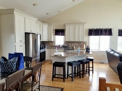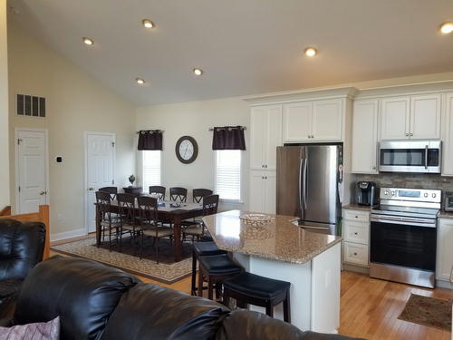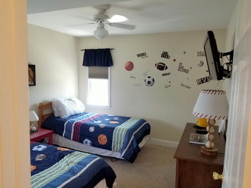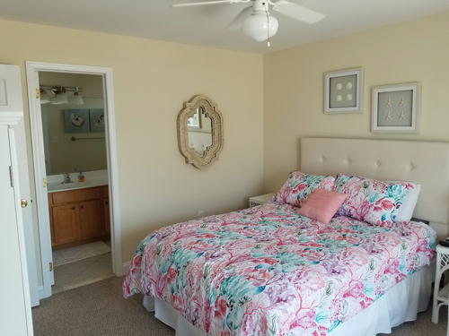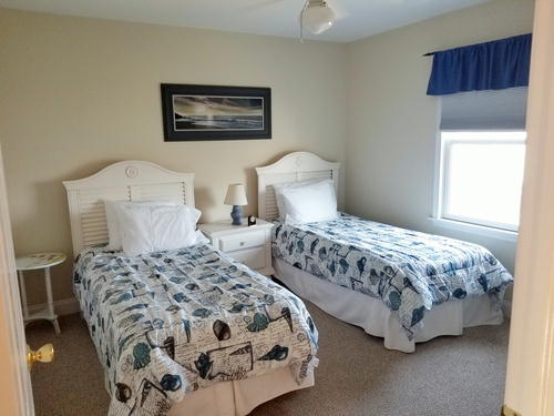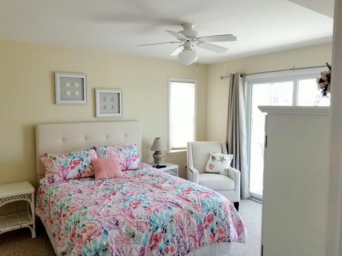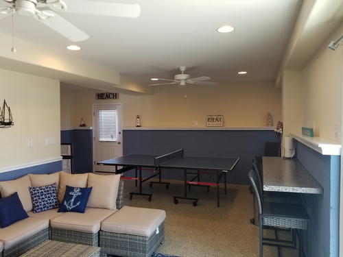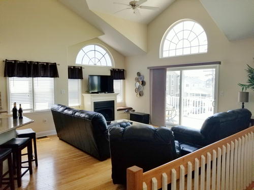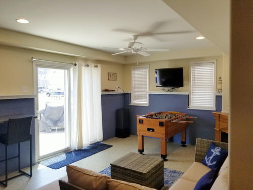 Beautiful townhouse with 4 decks and incredible bay views. Home is 12 homes from the beach, has patio area with table and grill that is fenced in. Bottom floor is game room with beverage refrigerator, table tennis, Fooseball Table, TV for video games and viewing, Sectional and bar height counter and chairs. All bedrooms, as well as main family room, have cable TVs. Outdoor furniture on each deck and umbrella on top deck. Hardwood like floors on main floors and hallways. Garage is available for bikes, or beach items. 6 Beach chairs are provided with beach tags. Home is impeccably clean and beautifully decorated. An outside shower is provided for when you return from the beach. No Pets.