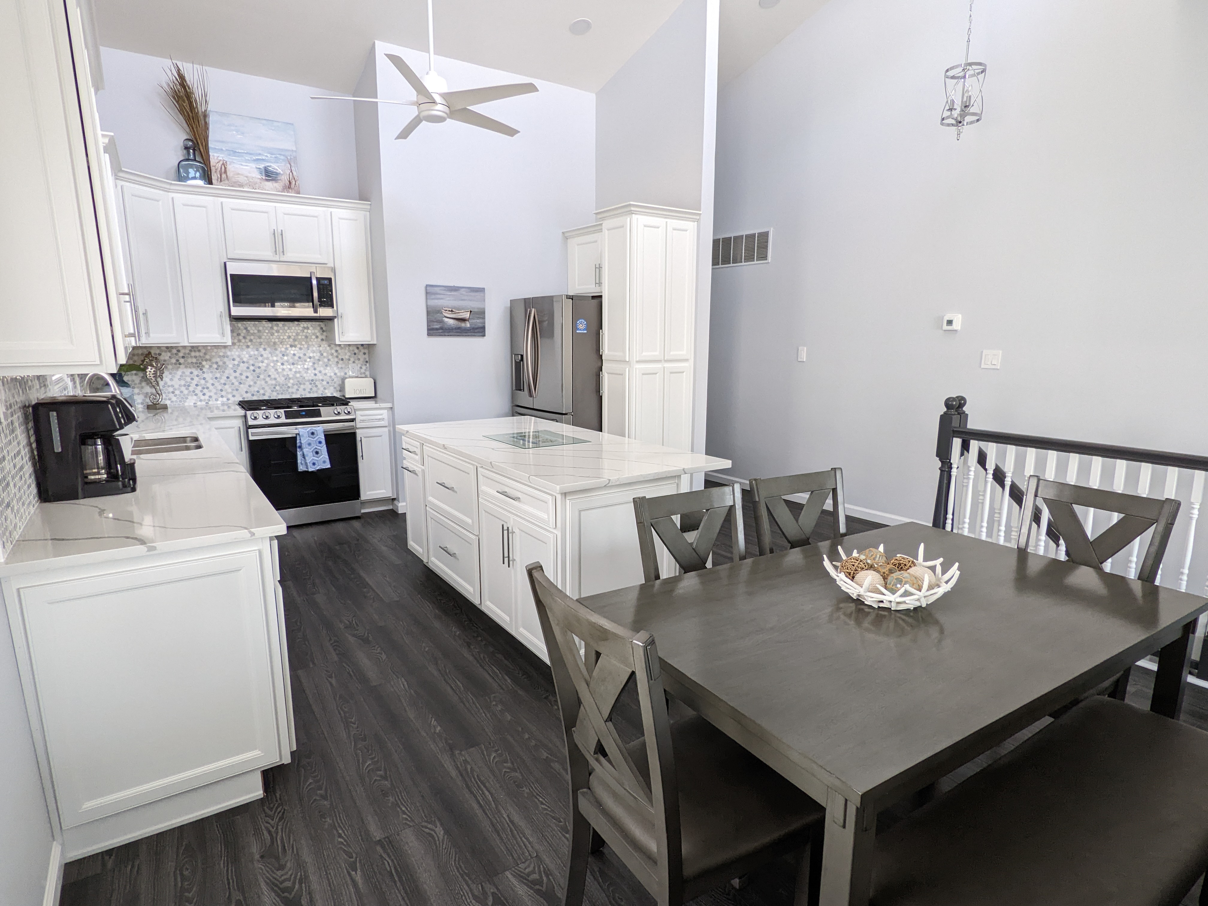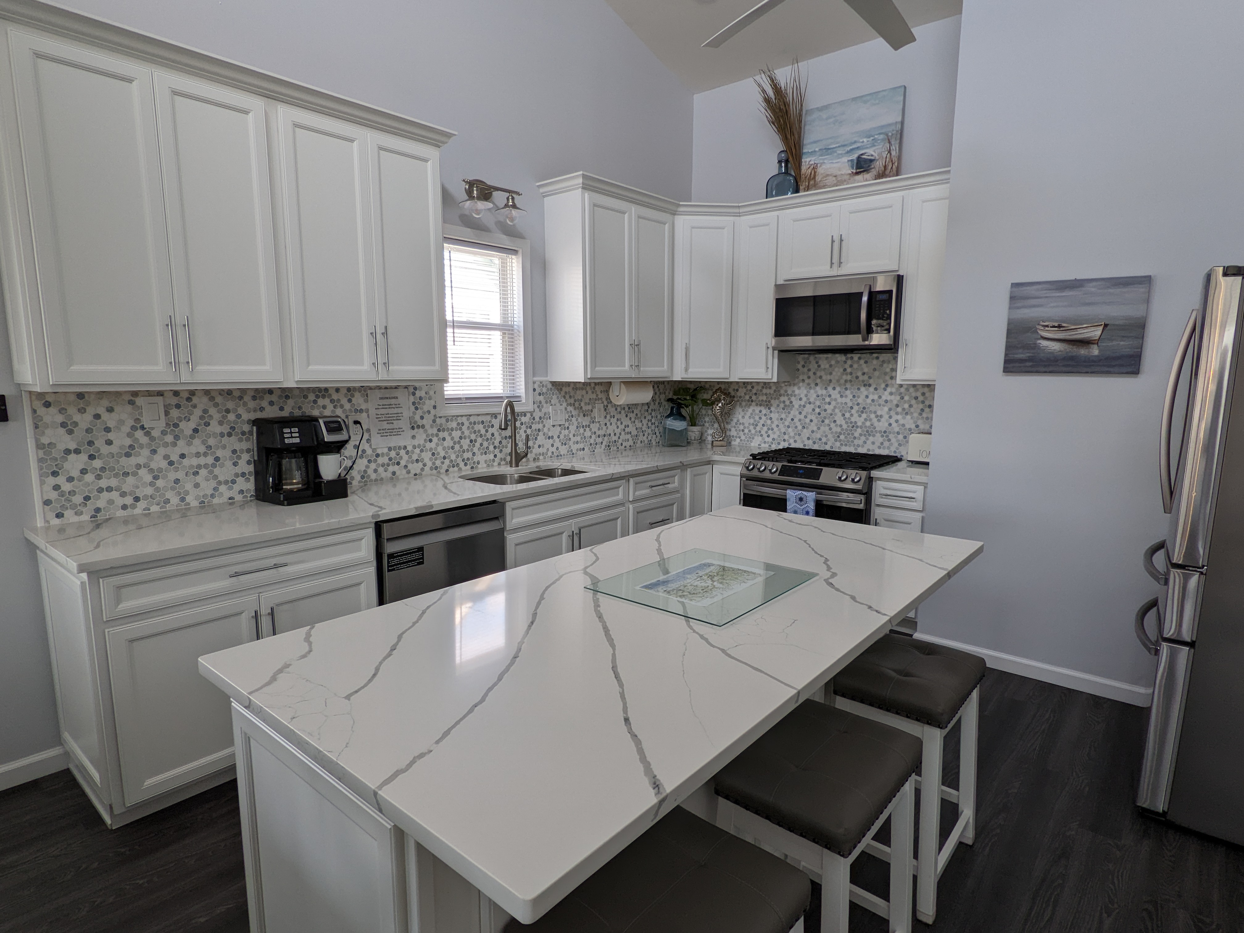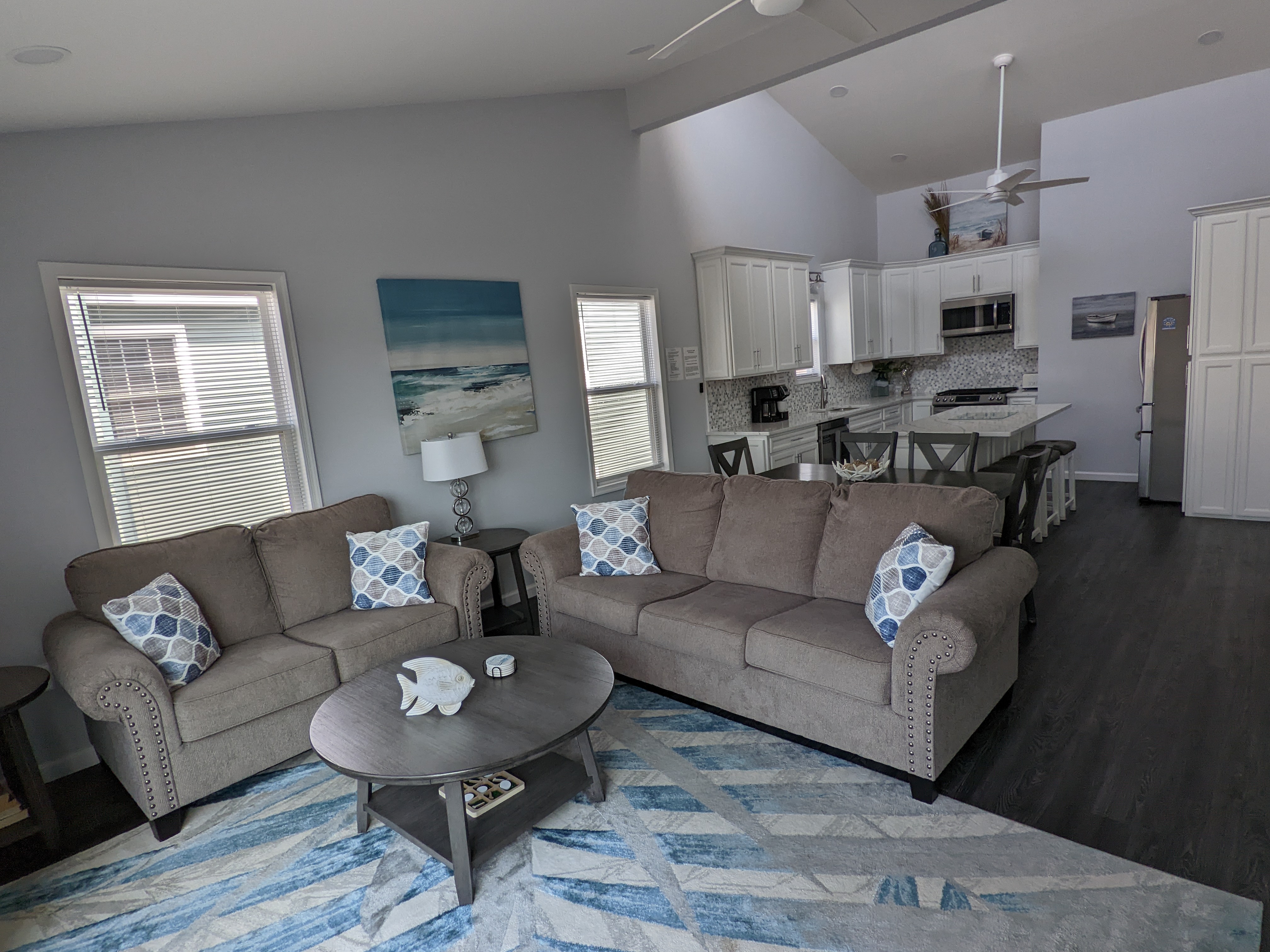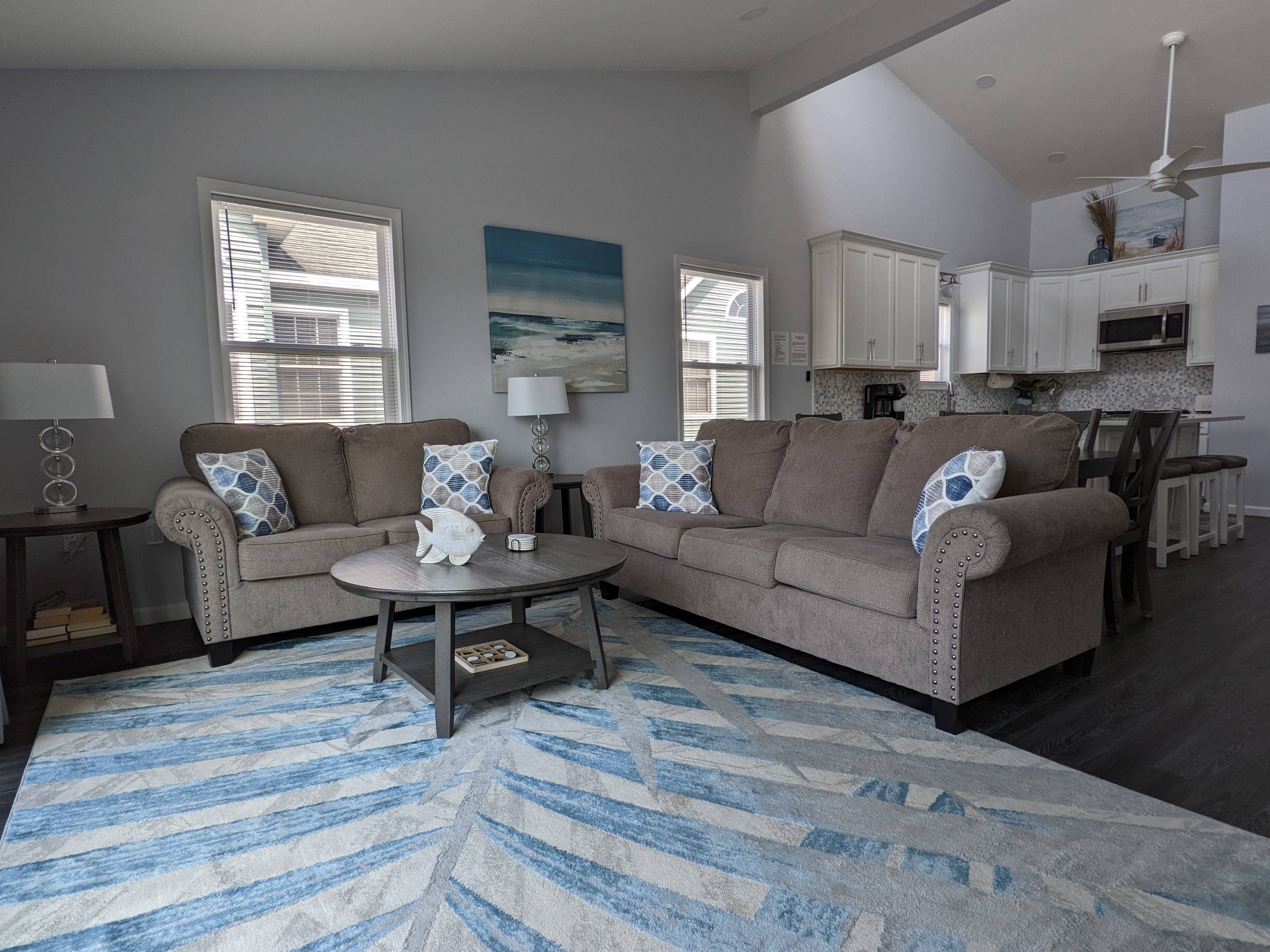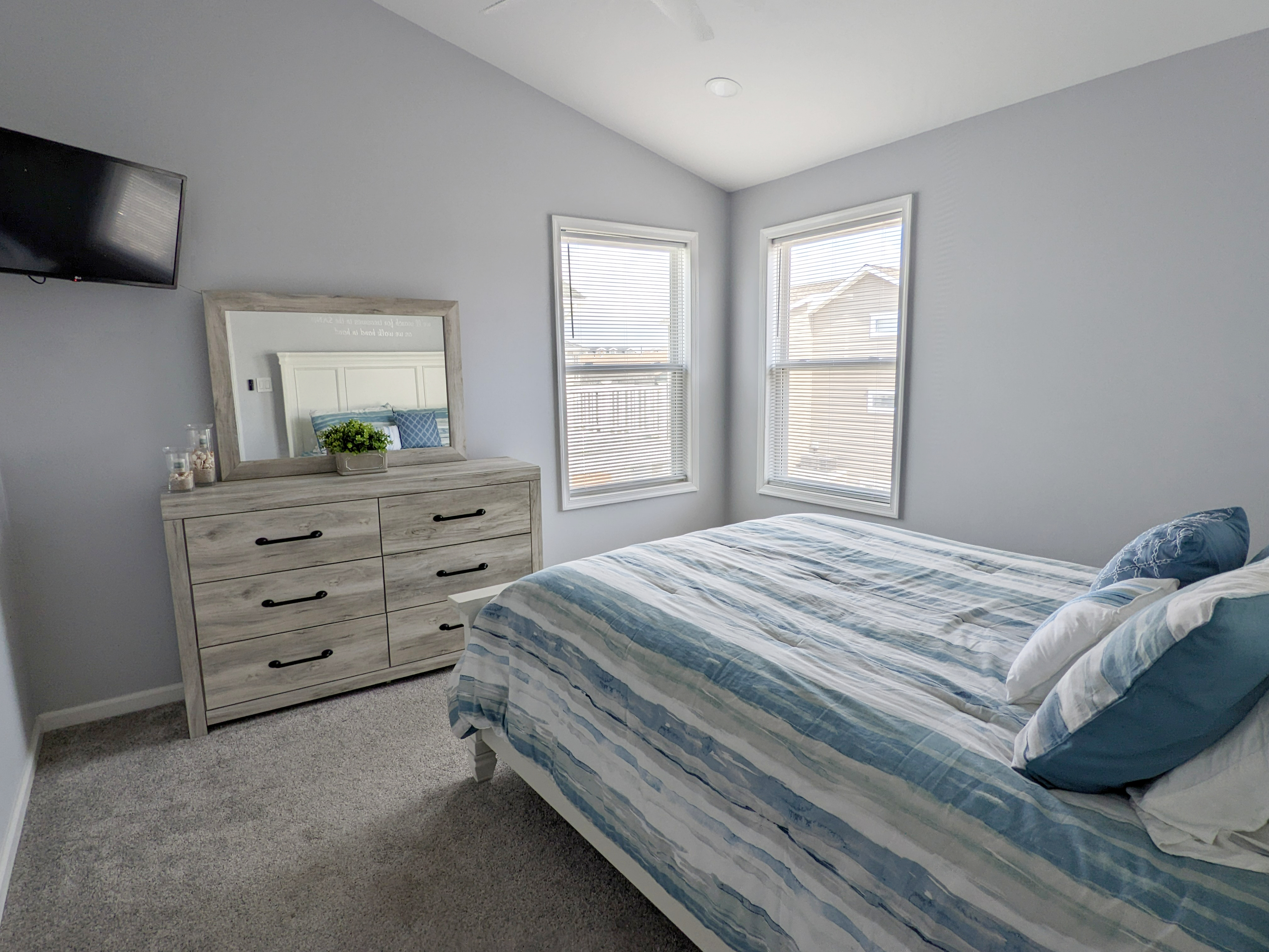 This 4 bedroom, 2.5 bath townhouse is very close to the beach, promenade, Excursion Park, restaurants and shopping. Amenities include 2 bedrooms with a queen bed in each and 2 bedrooms with 2 twin beds in each. A great room area offering dining and a fully stocked kitchen, your choice of two decks for relaxing after a day at the beach, attached garage, a nice size back yard and off-street parking.Owner provides beach chairs, some boogie boards,a few bikes (no helmits) and some crab traps (not guaranteed).All TV's are streaming. the first floor is not included in your rental.
