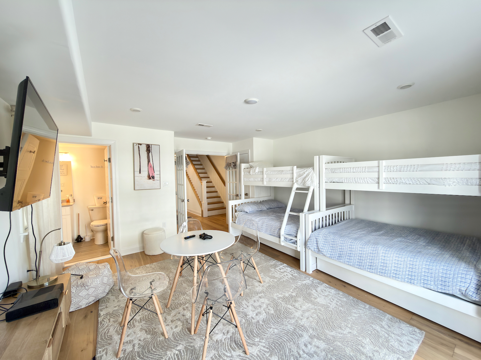 New construction for summer of 2024. Six bedroom, 4.5 bath townhouse close to all dining and entertaining downtown has to offer. The First floor is the Bonus Room/6th Bedroom with 2 pyramid beds, Twin over full and full bath. The Second floor has a master bedroom with king bed and three additonal bedrooms with 2 queens and 1 king and full hallway bath. The Third floor has one bedroom with a king bed and full bathroom.